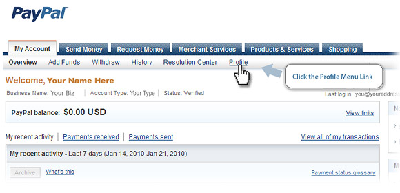 Click the 'Profile' Link