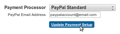 Select 'PayPal Standard,' enter the email address attached to your PayPal account, and click 'Update Payment Setup.'